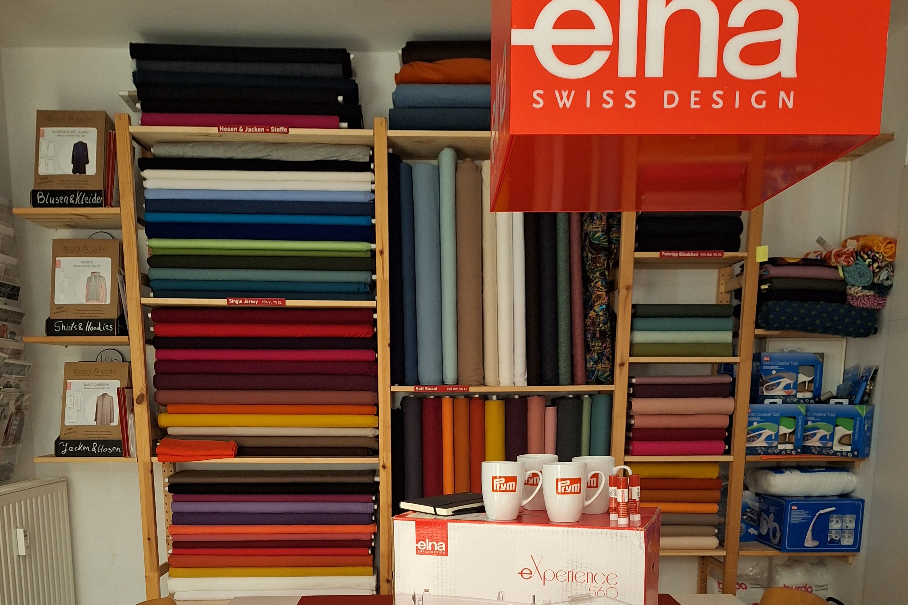 Neben ausgewählten Stoffen können sie in der Nählust alle gebräuchlichen Nähutensilien erwerben. Vom Garn über Werkzeug bis zu Verschlüssen und Knöpfen finden sie alles, was sie für einen reibungslosen Arbeitsprozess brauchen.